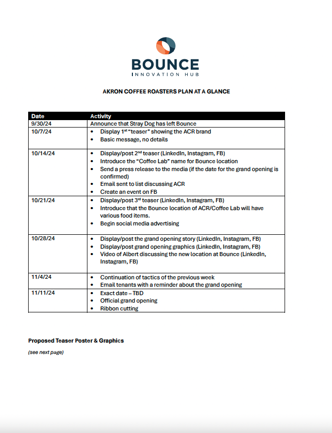 Below are samples of some marketing plans and briefs (mini-plans) for different marketing campaigns and initiatives. These items provide an overview and inform all team members about each marketing initiative. Some provide in-depth details, while others provide a high-level overview and schedule.