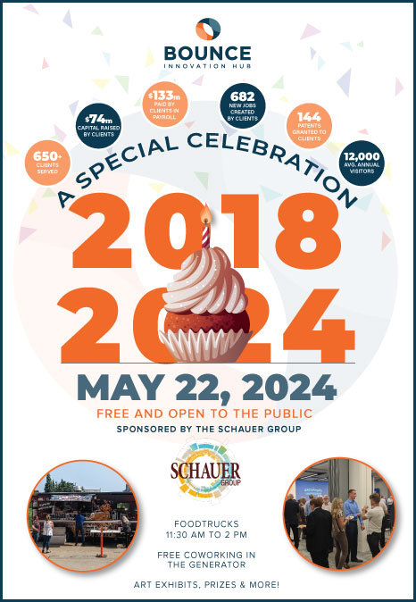 Bounce Innovation Hub was founded in January 2018 and serves northeast Ohio entrepreneurs, startups, and small businesses. Located in downtown Akron, the nonprofit organization comprises over 300,000 square feet and nine stories in one of the former Goodrich buildings. Bounce Innovation Hub offers an entrepreneurial experience that is unique to Northeast Ohio.